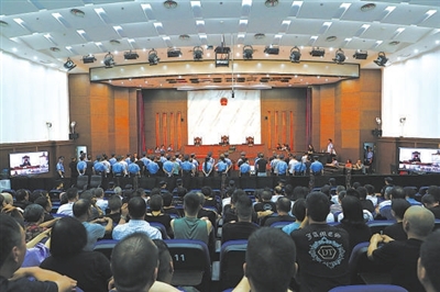 | 金华市中级法院多次开庭审理以陈才强等人为首的特大涉黑案,偌大的刑事审判庭座无虚席。 |