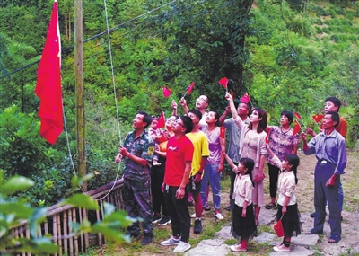 2009年,84岁的老红军戴章荣去世。老人在弥留之际对儿孙们说:“我为什么身在深山却坚持天天升挂国旗,因为国旗象征人民团结和对党的衷心拥护,升挂国旗是爱党爱国的表现。希望我走后你们把升国旗的事延续下去。”打那以后,戴章荣的三个儿子继承老人遗愿,坚持每天升挂国旗,至今已坚持了整整27年。升旗现场,戴章荣的大孙子戴仙忠说:“现在祖国强大、人民安康,连我们小山村生活也越来越好,今年又是中华人民共和国成立70周年,所以每逢周末,我们都会带着孩子们参加升国旗,目的就是让爷爷的遗愿一代一代传承下去,激发晚辈们对祖国的热爱之情。”