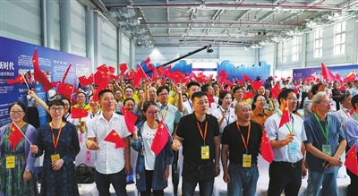 | 昨日上午,长三角地区民营企业劳动竞赛现场交流会暨纺织行业职工职业技能竞赛开幕式在绍兴柯桥举行,开幕式前全场高唱《歌唱祖国》。 见习记者邹伟锋 摄 |