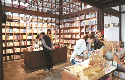 | 在乡村复兴的路上,松阳用文化反哺乡村。昨日,绿水青山看“浙”里——“长三角工会媒体浙江行”采风团走进陈家铺村,网红先锋书店也在这里开了新店。 记者邹伟锋 摄 |