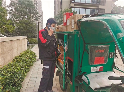 | 顺丰小哥王磊在配送快递件。 记者曾晨路 摄 |