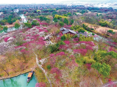 目前,西溪湿地梅花开得正盛,到西溪“曲水寻梅”最为闲适。西溪共有梅林300亩,梅树2万多株,集中在梅竹休闲区以及梅林路沿线,有江梅、宫粉、朱砂、绿萼、玉蝶、美人梅等多个品种,大多依水而植。乘坐摇橹船,橹声悠悠,抬手可及疏影横斜的梅枝,低头便见潺潺溪水,再品一盅清茶,惬意悠闲!也可乘坐电瓶游船,在梅墅码头上岸,漫步梅林,放松身心。