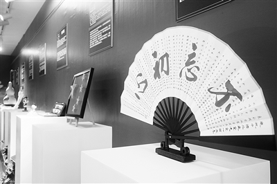 例如,展厅正门是由匠人张国庆绘画、杨财生作诗、方超书法题诗、陈立烙扇骨、朱玉琴手鞠扇坠,五位匠人的集体创作手工扇面画《伟大征程》:作品表达了中国人民在实现中华民族伟大复兴的征程中,在打造“一带一路”人类命运共同体的伟大实践中励精图治奋勇前进。