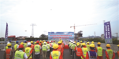 又好又快是全体参建者齐唱的主旋律。7月8日,杭金衢改扩建二期六处关键控制性节点工程之一的常山港大桥率先完成双向八车道建设。常山港大桥施工范围内交通环境复杂,桥梁附近管道密布,紧邻既有运营高速公路,“边通车、边施工”,且是岩溶高度发育的地质路段,使施工作业充满高危性、复杂性、突发性等特点,改扩建施工条件十分艰难。在如此艰苦条件下,全体参建人员积极投入“学党史、当先锋、奋战百天、争创一流”和“两美”浙江重点工程立功竞赛等专项活动,从党史学习中获得前行的勇气和克难的智慧,克服新冠肺炎疫情导致的工期滞后,以及汛期、洪涝造成的工期损失等诸多困难和不利因素。一方面,科学合理安排施工计划,倒排工期,挂图作战,有序组织施工班组进场,进行安全、技术交底,加强现场施工安全质量管控;另一方面,持续开展劳动立功竞赛,加大作业人员和机械设备投入,一线工人战雨天抢晴天,人停机不停,营造分秒必争、你追我赶的良好施工氛围,经历了三次交通转换,比计划提前两个月实现建成目标。