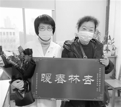 记者程雪报道 几天前,省新华医院眼科主任俞萍萍更新了朋友圈,“感谢信任,感恩遇见,美好的医患关系是相互成就的。”第一张配图是蒋奶奶刚刚做完由她主刀的白内障手术。第二张则是她手里捧着蒋奶奶送来的“新年礼物”——刻有“杏林春暖”的匾和火红的玫瑰花束之后,留下的合影。一会儿的工夫,这条朋友圈下收获了百余个点赞。