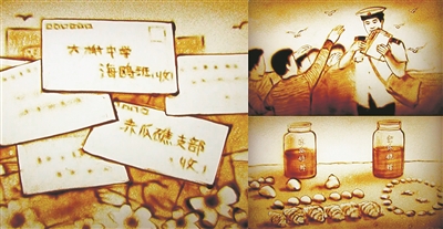| 大榭中学学生和沙画师张明聪用赤瓜礁海沙共同创作的主题沙画。 陈思佳、孙捷 制图 |