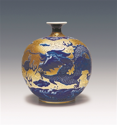 | 《青花描金(腾飞)云瓶》瓷器 周国华 |