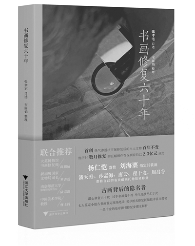 《书画修复六十年》一书,讲述张孝宅先生古书画修复六十年生涯,从学艺开始到修复各类古书画文物的故事。其中,如浙江省博物馆馆藏东阳南寺塔出土的已成硬块的宋代纸质七经卷,及温州慧光塔出土的包裹佛经的丝织经袱,从一团泥饼修复成博物馆珍贵文物,修复已成碎片的光绪帝御书“波靖南溟”匾额手迹原件,使其恢复如初,皆是修复古书画的极佳个案;将烧成纸灰的纸张上的笔迹复原使其能被识读,以此为公安部门破案提供线索等,虽是张孝宅先生在文物修复和复原技术方面的经历,却也是他探索书画修复技术用于其他领域的有益尝试。