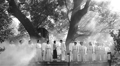 而方家河头,两棵百年大树合拢一体,当地人叫鸳鸯古樟,状若一对生死恋人。在枝叶茂密的树下吟唱《七夕》,犹如被温暖的手轻轻拥住,周遭枯藤老屋,一时今夕何夕。