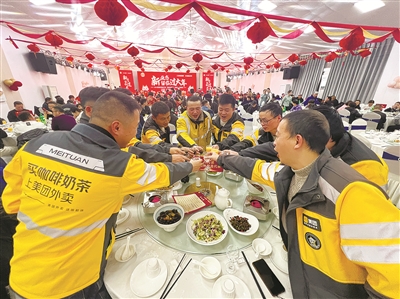 “欢迎大家回‘家’过年!”近日,在杭州临安的一家酒店内,一场由工会“娘家人”为当地新业态劳动者和环卫工人准备的年夜饭热闹开席。200余名职工欢聚一堂,品年味、同举杯、贺新春……