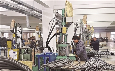 位于磐安经济开发区的浙江凯越塑胶工业有限公司生产车间内也是一片繁忙景象,设备高速运转,工人们正忙着生产一批即将交付的订单。