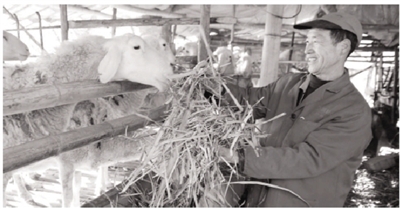建德市下涯镇马目村村民胡有乐,2014年初开始圈养100多只湖羊,当年底已销售60多只,养羊一年的净收入可达6万元,不比在外打工挣的钱少。图为胡有乐正在一排搭建成的羊圈里,给湖羊投喂青草、玉米等饲料。通讯员宁文武 摄影报道