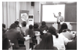 | 上海市青年创业基金会副秘书长张士举应邀给永康职校老师及中小企业主带来了一场“头脑风暴”。程欣荣 摄 |