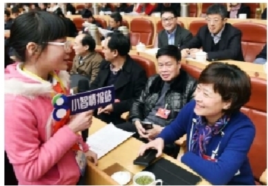在省政协十一届三次会议会场上,一位小记者跑到了一位政协委员的座位前,要求现场采访。不一会儿就听到委员笑着回答,你的“问题”太大了。不过,稍作思考,委员还是很认真地回答了小记者的提问。记者周金友 摄影报道