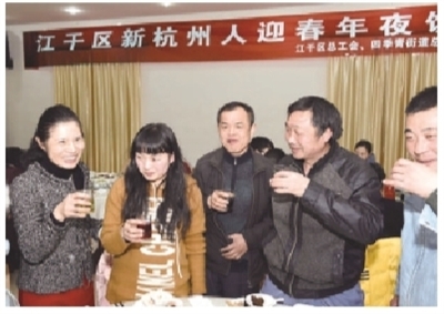 ——杭州市江干区外来务工人员早早吃上年夜饭了