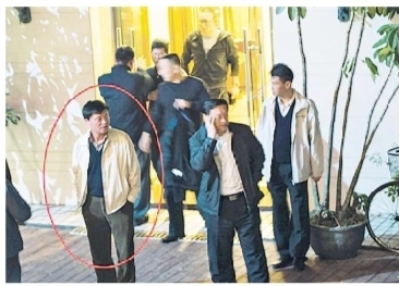 | 深圳警界多名官员酒楼吃娃娃鱼,被指违反中央“八项规定”。28人参与该饭局,不过,事发后据称当事人自掏腰包买单。南都记者暗访后亮明身份,遭赴宴官员殴打,并抢走相机、手机。图中身穿黄色夹克的中年男子(圈内)即殴打记者陈乐伟的嫌疑人,市技侦支队退休官员王鹰航。 |