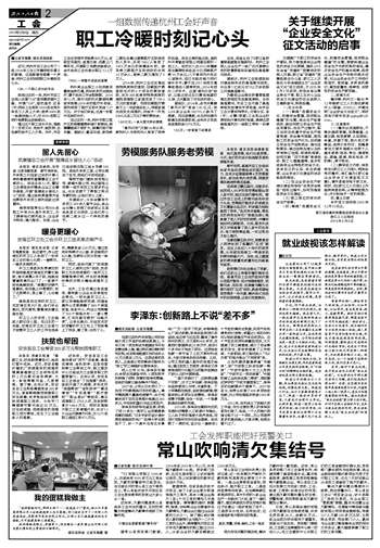 环卫工人的辛劳,工会娘家人都记在心里。在过去的一年里,定海区环卫处工会致力于改善环卫工人的工作生活条件,筹集资金23.8万元,通过政府采购棉衣832套、多功能雨衣920套,在新年之初分发给一线环卫工。