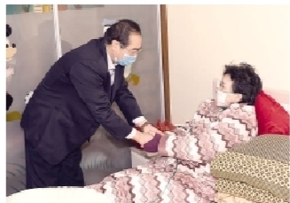 | 郭军在嘉兴慰问伤病卧床的困难工会干部金丽云。 记者周金友 摄 |