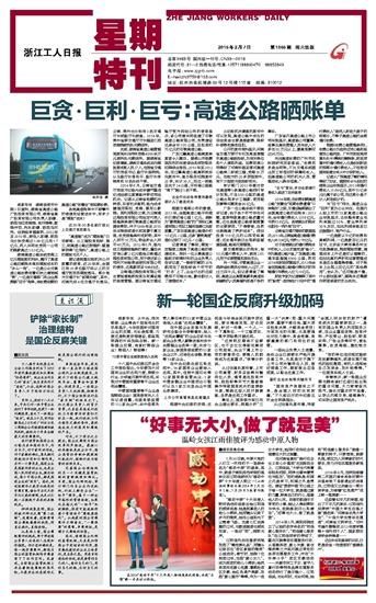 浙江工人日报 一版要闻 00001 “好事无大小,做了就是美” 2015-02-07 2 2015年02月07日 星期六