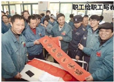 近日,中国重汽集团杭州发动机有限公司工会组织该厂的职工书法爱好者连续3日在“新杭州人文化家园”里摆起摊,开展为职工现场写春联、送春联活动。现场能书写一手好字者,变成了大家眼里的文艺青年,成为大家争相追逐的“范”。