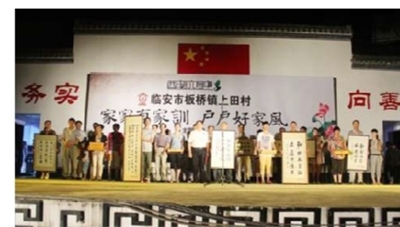 这是前不久发生在浙江省临安市天目山镇亭口村的一幕,10户海选出来的家庭接受全镇百姓的褒奖。