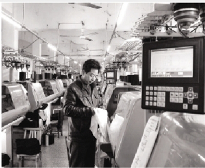 近日,在建德市杨村桥针织厂的车间里,机声隆隆,12台崭新的电脑针织机前仅2名工人在操作针织品,日加工出口俄罗斯产品达500多件 。据该厂负责人殷忠仁介绍,自针织行业转型时,就筹集资金用于购买电脑针织机,这样既减轻劳动强度,且一台电脑针织机 ,要赛过4名操作工一天的劳动功效。过去,这里整个车间需要30多人,可现在只需6名工人就足够了。
