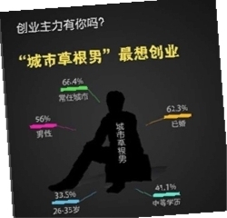 大调查数据发现,中国的创业主力并不是我们想象的高富帅,而是我们身边实实在在的草根们。甚至,学历越高创业意愿却反而越低,而中学中专学历的受访者成为创业愿望最强的群体。