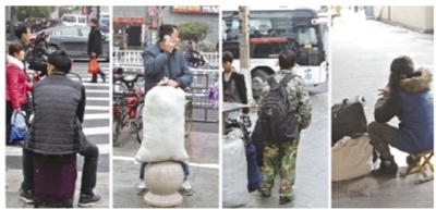 进入站前广场,就能见到许多夹杂着各地方言的外来务工人员,背着重重的行李,迎面走来。他们中有过完年回来工作的,熟门熟路,出站后身影很快就消失了。也有不少是第一次来杭州找工作的,他们对大城市既向往又恐惧,站在出口处,不知道向左还是向右,一脸茫然。