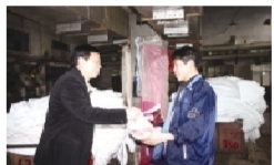 “元宵佳节即将来临,祝你们节日快乐,工作顺心……”昨日,绍兴市柯桥区总工会干部深入企业车间班组,了解企业复工情况,向职工致以元宵节的问候。图为柯桥区总工会主席唐水淼(图左)走进浙江爱利斯染整有限公司车间,把爱心汤圆递到职工手里。通讯员钟伟 韩余静 摄