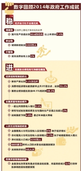 坚持创新管理,强化服务,着力提高政府效能。提供基本公共服务尽量采用购买服务方式,第三方可提供的事务性管理服务交给市场或社会去办。积极推进决策科学化民主化,重视发挥智库作用。全面实行政务公开,推广电子政务和网上办事。各级政府要自觉接受同级人大及其常委会的监督,接受人民政协的民主监督,认真听取人大代表、民主党派、工商联、无党派人士和各人民团体的意见。我们的所有工作都要全面接受人民的监督,充分体现人民的意愿。