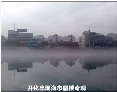 3月18日早晨,由于受冷热空气交汇影响,地处浙西山区的开化县城芹江两岸出现海市蜃楼气象奇观。通讯员徐曙光 摄