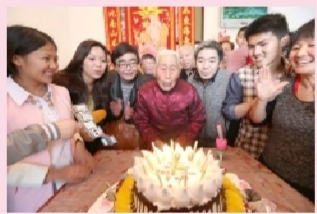 | 在热心人士及家人的祝福下,沈如刚开心地吹生日蜡烛。 |