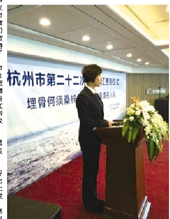 | 李艳红在主持杭州市第二十二次骨灰撒江仪式 |