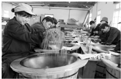 3月25日,建德市镇源茶叶专业合作社的10多名炒茶工忙于加工青叶,炒制龙井茶。据悉,该合作社今年种植的300多亩“龙井43”品种自3月12日开始采摘以来,每天至少可采摘青叶500多公斤,可炒制干茶100多公斤,价格每公斤1200元以上,畅销上海、杭州等地市场。由于人工工资有所上涨,今年新茶的价格比去年略有提高。