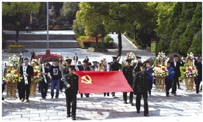 又是一年清明临。昨天从早晨起,位于杭州万松岭上的浙江革命烈士纪念碑前,庄严的国歌声,重温入党的誓言声,此起彼伏,声声振奋。来自各行各业的职工、解放军官兵、中小学生等社会各界人士,前来缅怀革命先烈,接受心灵的洗礼。春日阳光下,镌刻在石碑上的裘古怀烈士(1928年,年仅22岁的裘古怀担任共青团浙江省委常委,后任代理书记。随后遭国民党逮捕并被关进浙江陆军监狱,在1930年的“8·27”屠杀中牺牲。)遗言特别醒目:同志们,胜利的时候,请你们不要忘记我们!记者周金友 摄影报道