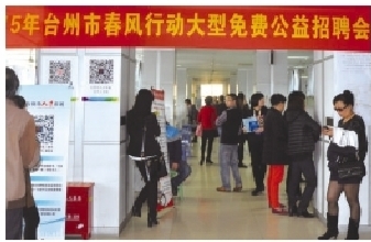 前日,台州市总工会等举办2015年台州市春风行动大型免费公益招聘会,当地200多家企事业单位提供了4000多个就业岗位。台州市总还为2000多名求职者现场提供法律法规、就业援助等咨询服务,发放5000多份《就业援助宣传册》、《劳动法律法规知识宣传手册》和《职工心理健康知识宣传手册》等。