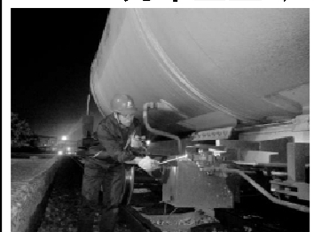 话没说完,他已钻进车辆底部,弯腰检查车底,不时用锤头的尖端敲打连接部位的螺栓,同时用手触摸检查开口销。他说:“这些车辆主要装卸危化品,运输过程中不允许出任何差错,所以车辆的密封装置必须保证,否则会造成严重的后果。”