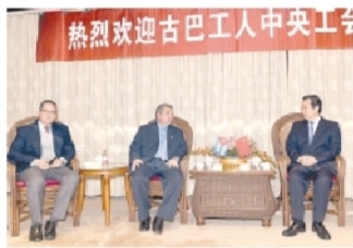 | 厉志海(图右)亲切会见古巴工人中央工会代表团。 |
