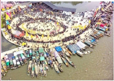 昨日,数万名渔民和当地百姓齐聚嘉兴市王江泾镇莲泗荡,参加江南水乡历史悠久的水上庙会“江南网船会”。据了解,“网船会”是江浙沪一带渔民纪念元朝灭蝗英雄刘承忠举办的民俗祭祀活动,通过水上庙会的方式,祈求风调雨顺、农渔丰收。 新华社记者徐昱 摄