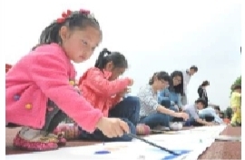 近日,浙江农林大学举办“山居长卷”为主题的美丽家园手绘大赛,大学生和当地小学生们在环保白布长卷上,用手中的画笔,描绘家乡的美丽风光和发展变化。