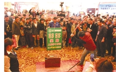 笔者看到,活动现场被围成一个大圈,里三层、外三层,水泄不通。在长枪短炮和各式摄像机、手机的关注下,10万元现金被放进半米高的王力保险柜内。