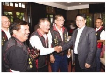 | 戴震华等省总领导热情欢迎来自宝岛的客人。 记者周金友 摄 |