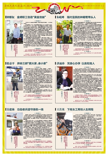 | 劳模名片: 全国劳动模范 嘉兴市乍浦港口经营有限公司集装箱作业队队长 |