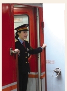 在时常超员的列车上,她总是像只辛勤的小蜜蜂忙个不停:清倒果盘、擦抹茶几、地面补洁、厕所冲刷……列车终到后,别人用拖把拖地板,而她是蹲在地板上用抹布擦,有时甚至是用钢丝球一点点拭去地板上的污垢。