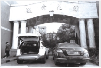5月8日早晨,嘉兴市区越秀花园后门停着两辆汽车,铁门上原本有“消防通道”4个红底白字,只能看见“防通”二字——也是,这等情状,必定是“防(止)通(行)”了。 田舍郎 摄