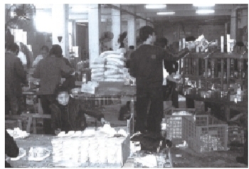 | 制鞋车间,粘胶剂中的三苯易挥发。 赵华佳 摄 |