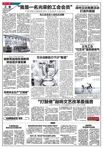 本报讯 通讯员杨菁报道 “我自愿加入中华全国总工会,拥护党的领导,遵守工会章程,执行工会决议,履行会员义务,弘扬工人阶级伟大品格,努力为把我国建设成为富强民主文明和谐的社会主义现代化国家、实现中华民族伟大复兴的中国梦而奋斗。”日前,宁波余姚泗门镇长振铜业有限公司举行工会会员入会仪式,200多名新会员面对工会会徽,在领誓人的带领下,庄严地宣读了入会誓词,正式成为工会大家庭中的一员。