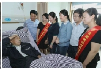 吴志豪、小绍兴摄影报道 昨日,民革德清县基层委员会、德清县武康镇梦金园黄金专卖店爱心志愿者,不约而同来到县人民医院,携带慰问金、东北野山人参、两用安全拐杖以及水果等,亲切探望、慰问共同结对的百岁抗战老兵——沈如刚。