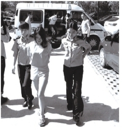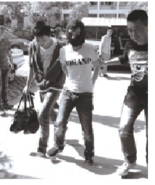 | 图为犯罪嫌疑人被从广东押回海宁。 |