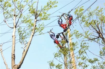近日,在德清县乾元镇卫星村,几名电力“蜘蛛侠”正攀爬在电杆上忙碌地工作(如图)。据悉,自2013年开始,德清县供电公司率先在湖州地区开展了农用线路改造移交工作,用全新的模式和高标准解决农村供电最后一公里的瓶颈限制。目前,已累计完成102个行政村的相关工作。为在今年6月底前完成全部改造移交工作,德清供电公司开展了农用线路改造“奋战100天”活动,明确相关单位职责和工作关键节点,每周通报改造进度,点评工程质量,确保完成任务。